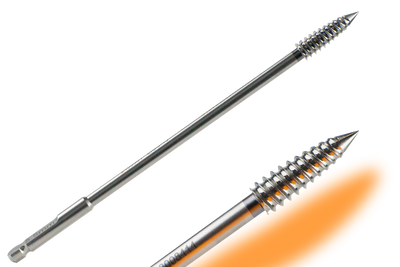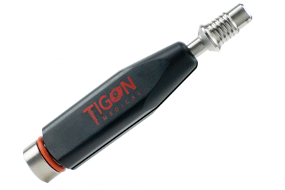 The medial tap is used to pre-tap a hole for the TIG55 medial anchor. When used, the tap reduces the torque placed on the anchor during insertion, especially in harder bone. Like the TIG55 suture anchor, the tap features a double start thread which halves the amount of turns needed to tap the hole.