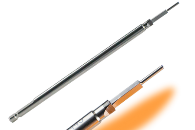 The Inner Anchor Inserter is designed to work in conjunction with the Outer Anchor Inserter, to allow for secure insertion of the Distal Anchor. The black laser lines are highly visible on the scope and the knurling on the back of the instrument allows for easy threading and unthreading of the anchor.